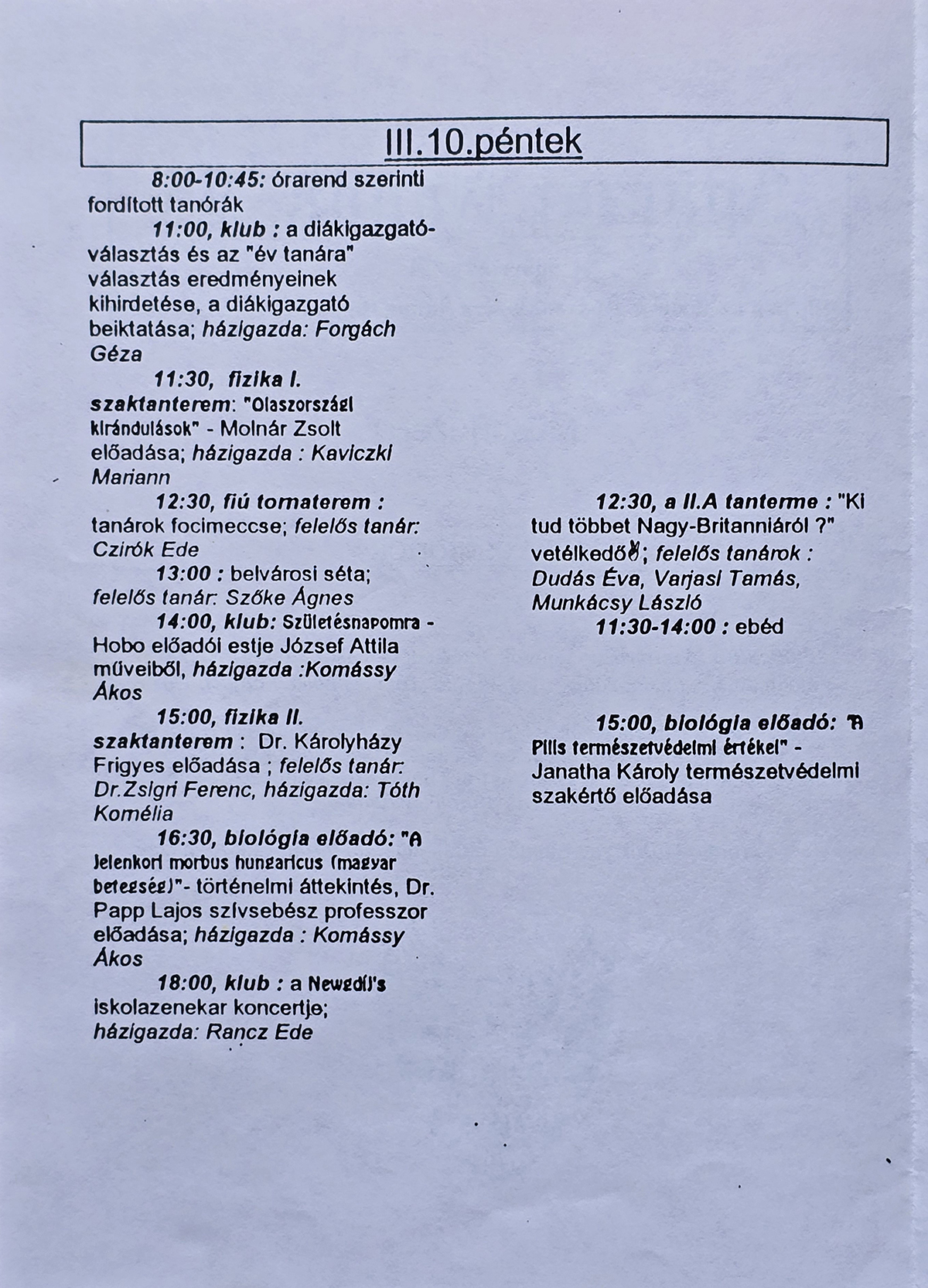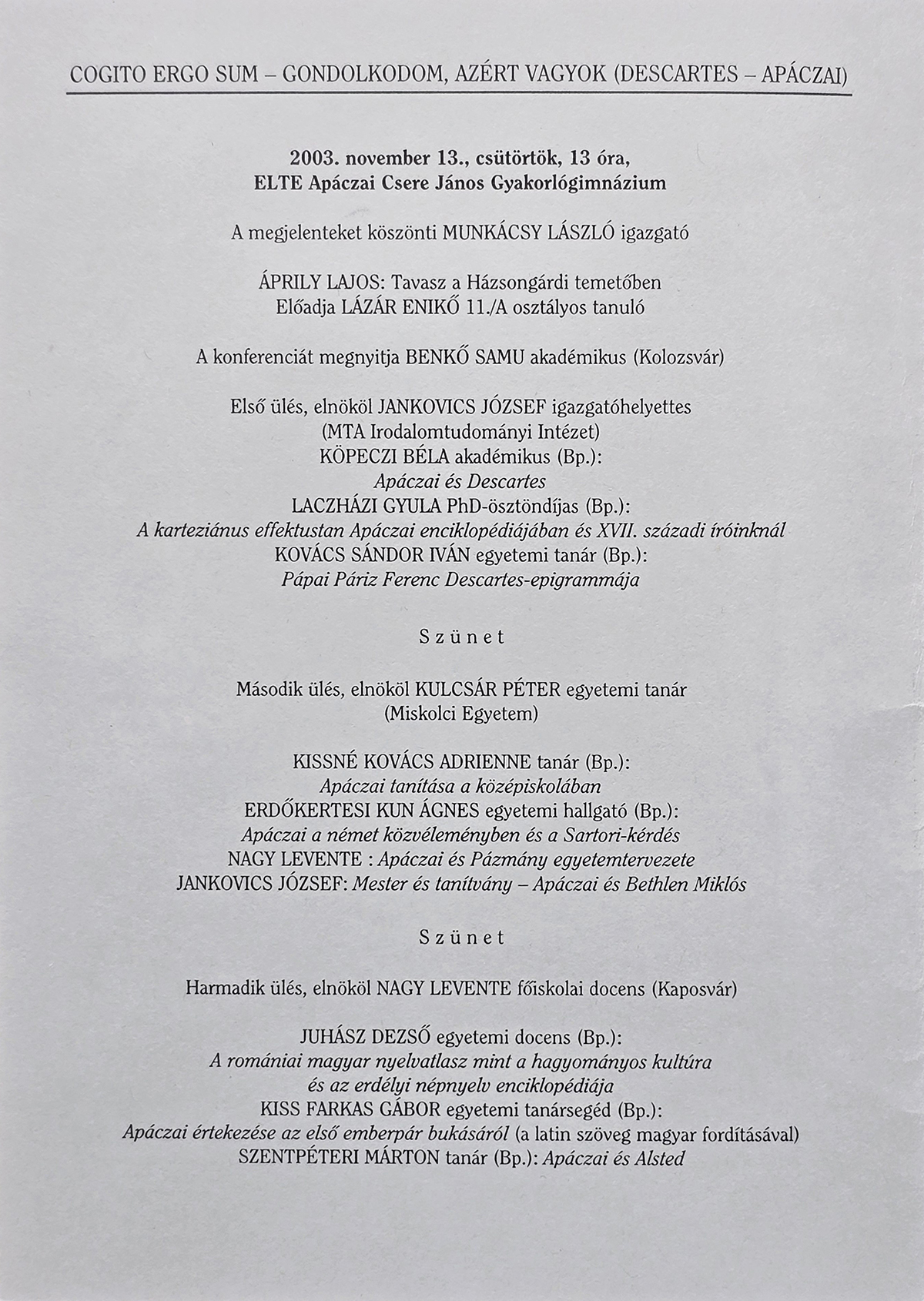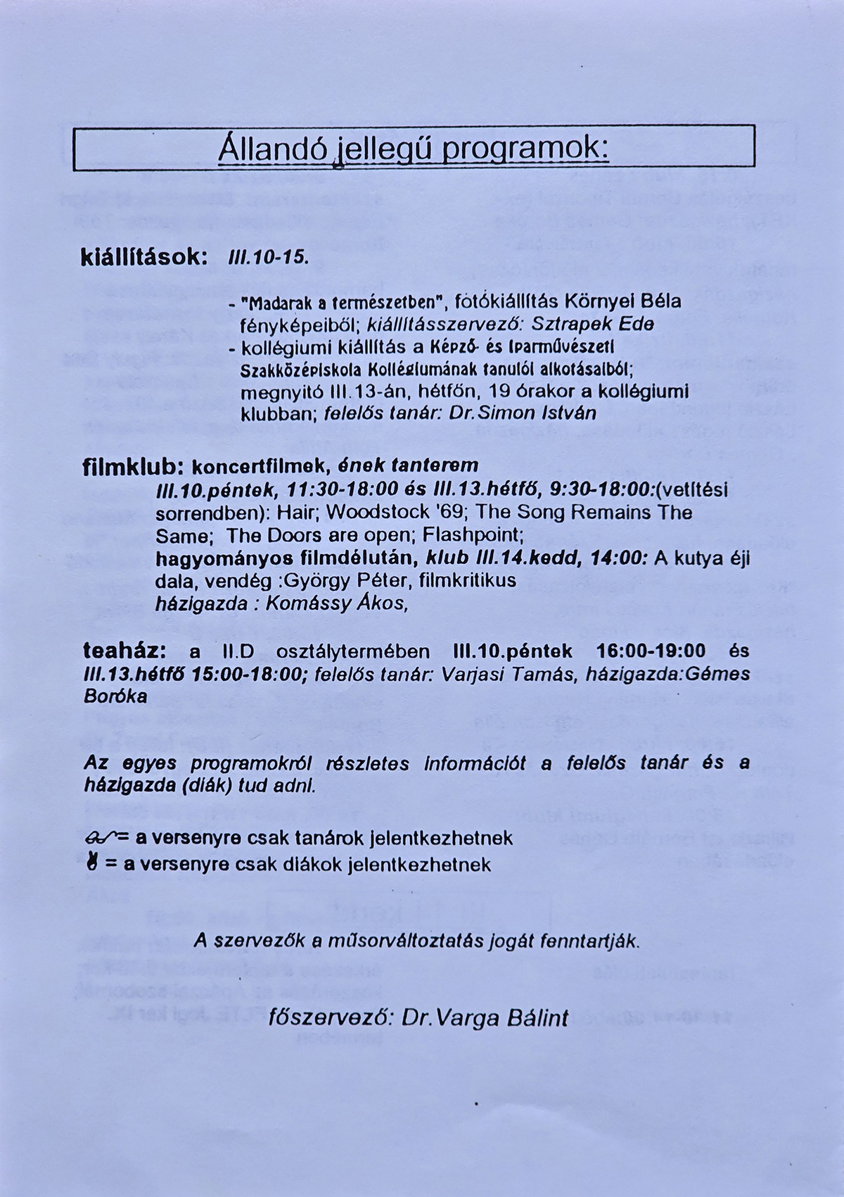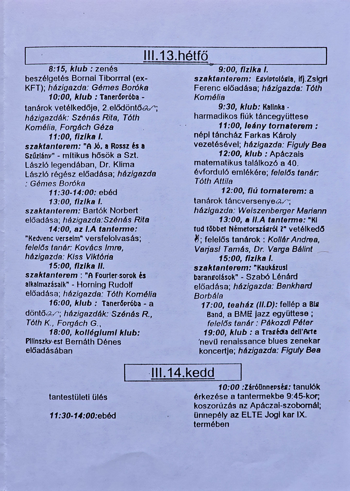 Az 1995-ös Apáczai-napok programfüzete (4/4).