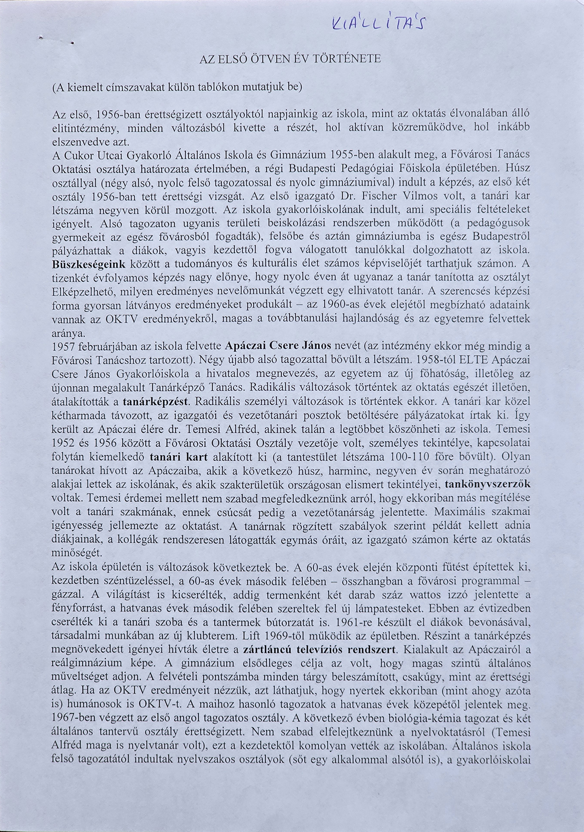 Az ötven éves jubileumi megemlékezéssorozat része Nyirő Tamás dolgozata alapján (1/3).