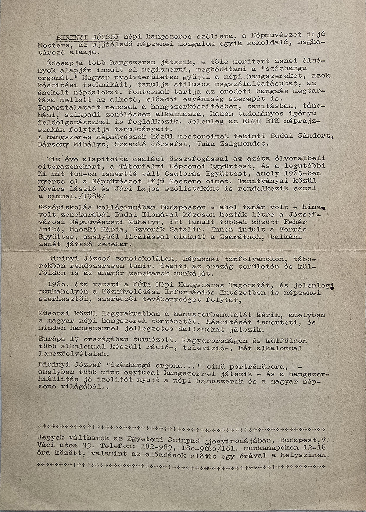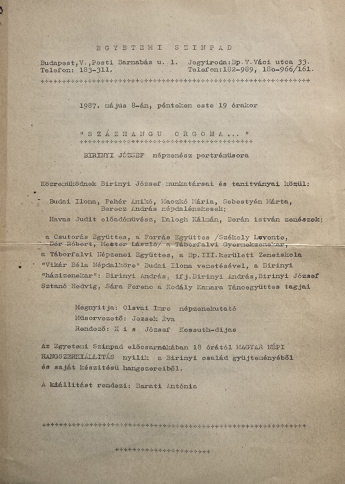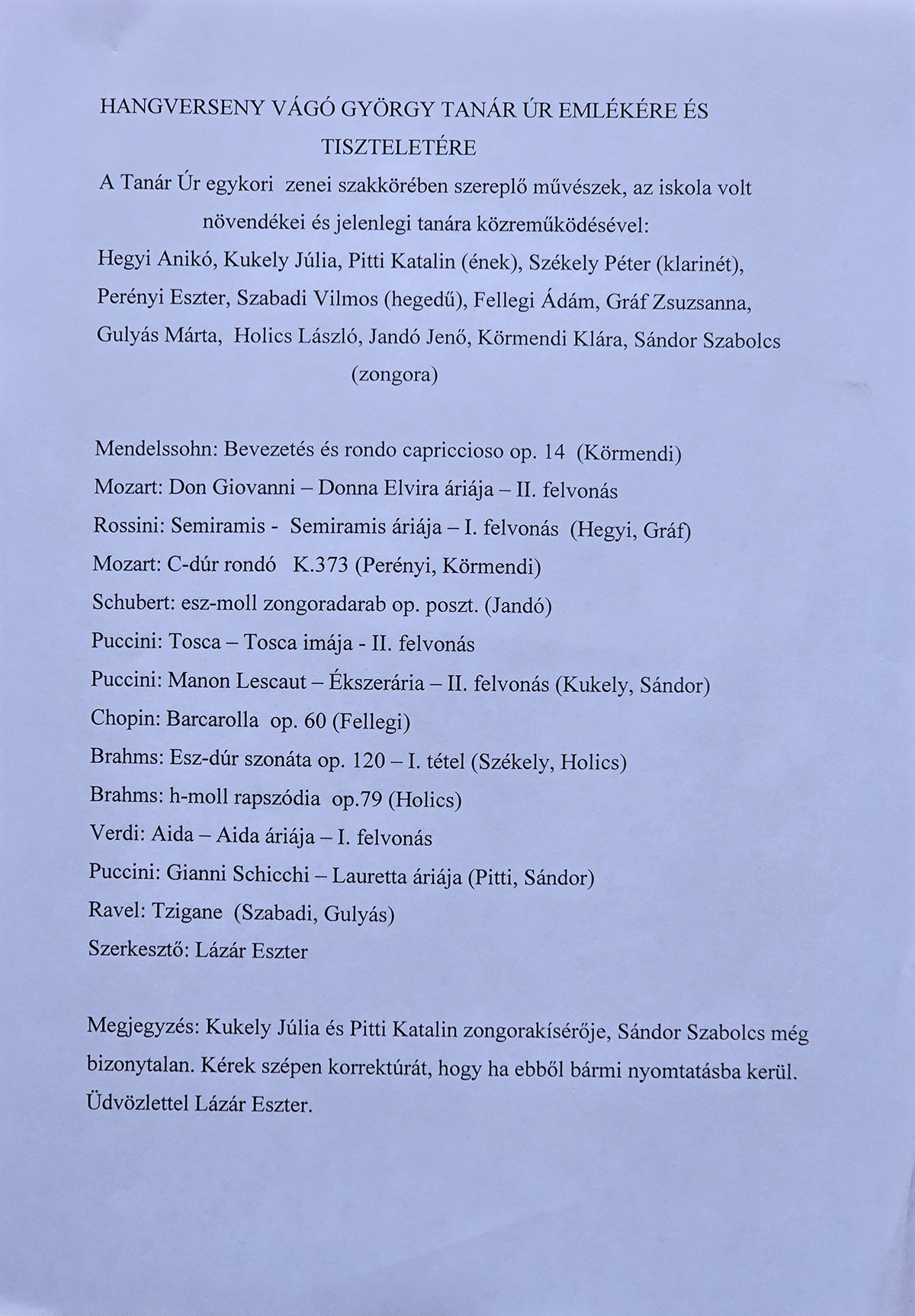 A Vágó György emlékére rendezett hangverseny programtervezete.