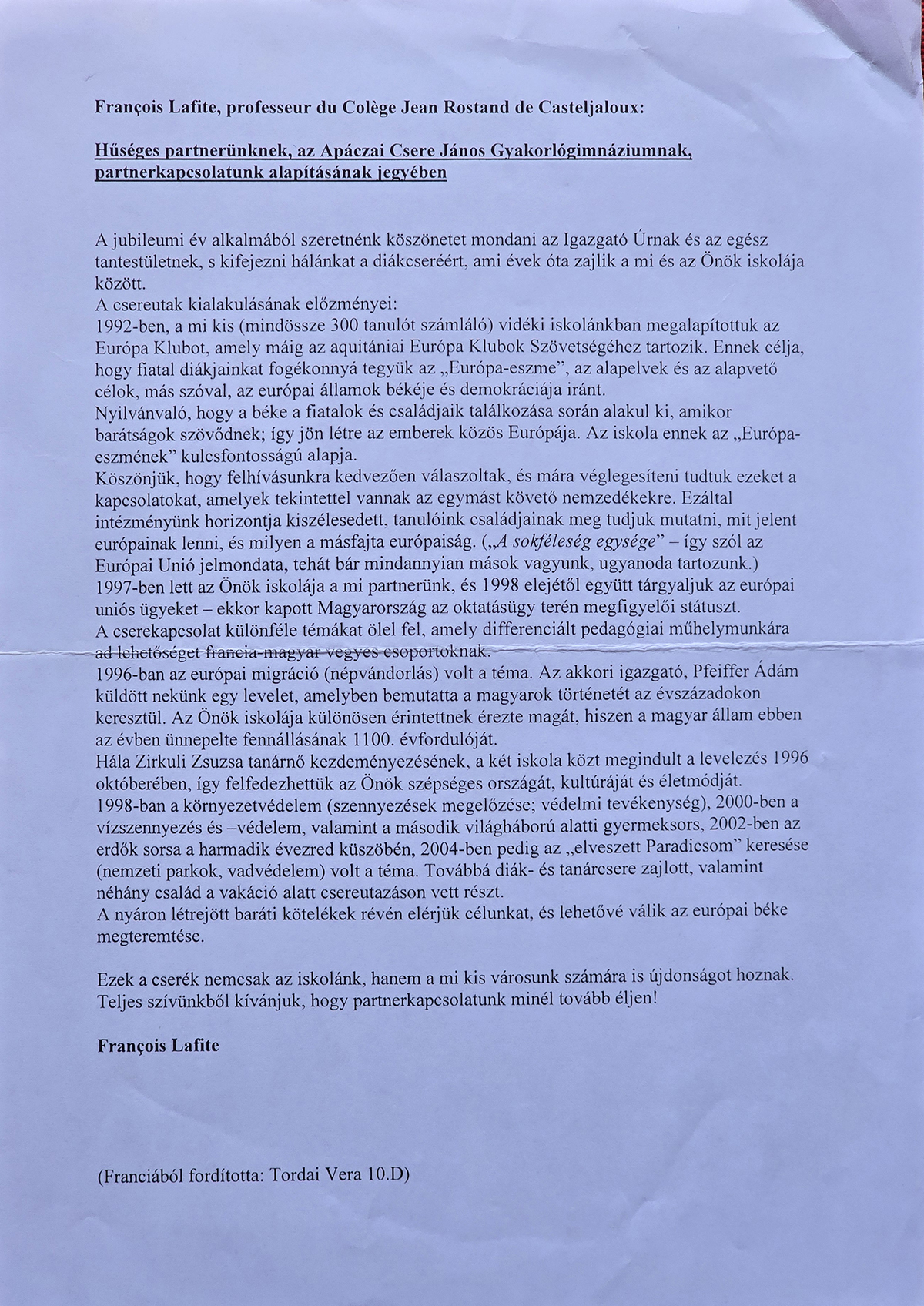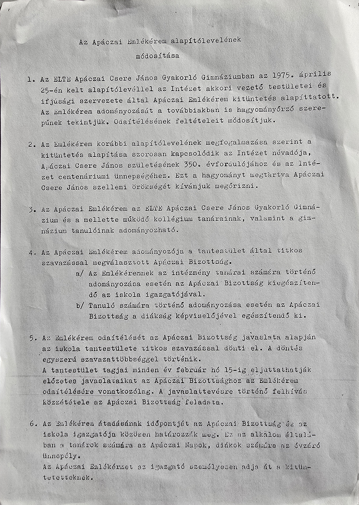 Az Apáczai-emlékérem alapítólevelének módosítása. (2/2).