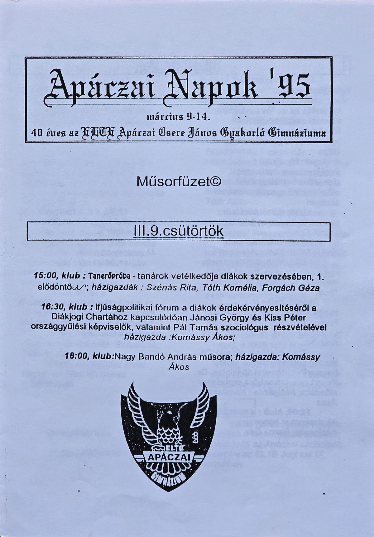 Az 1995-ös Apáczai-napok programfüzete (3/4).