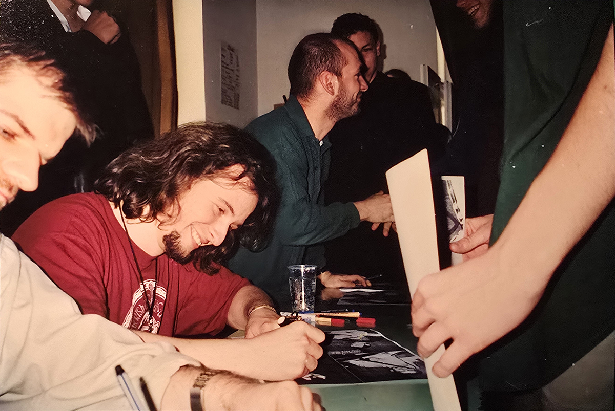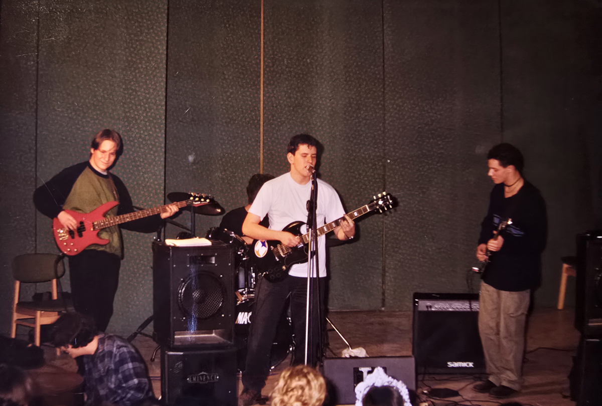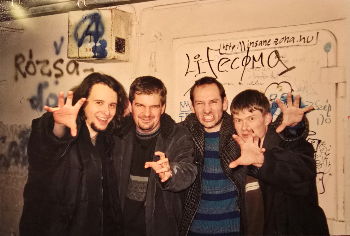 Tóth Attila, Czéh Zoltán, Börzsönyi Péter, Jobbágy Gergely. Az első promóciós képek egyike, mely a zenekar próbáján készült.