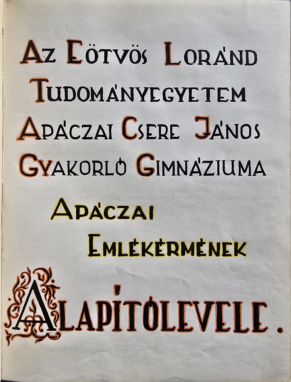 Az Apáczai-emlékérem alapítólevele. 1975. április 25. (1/4).