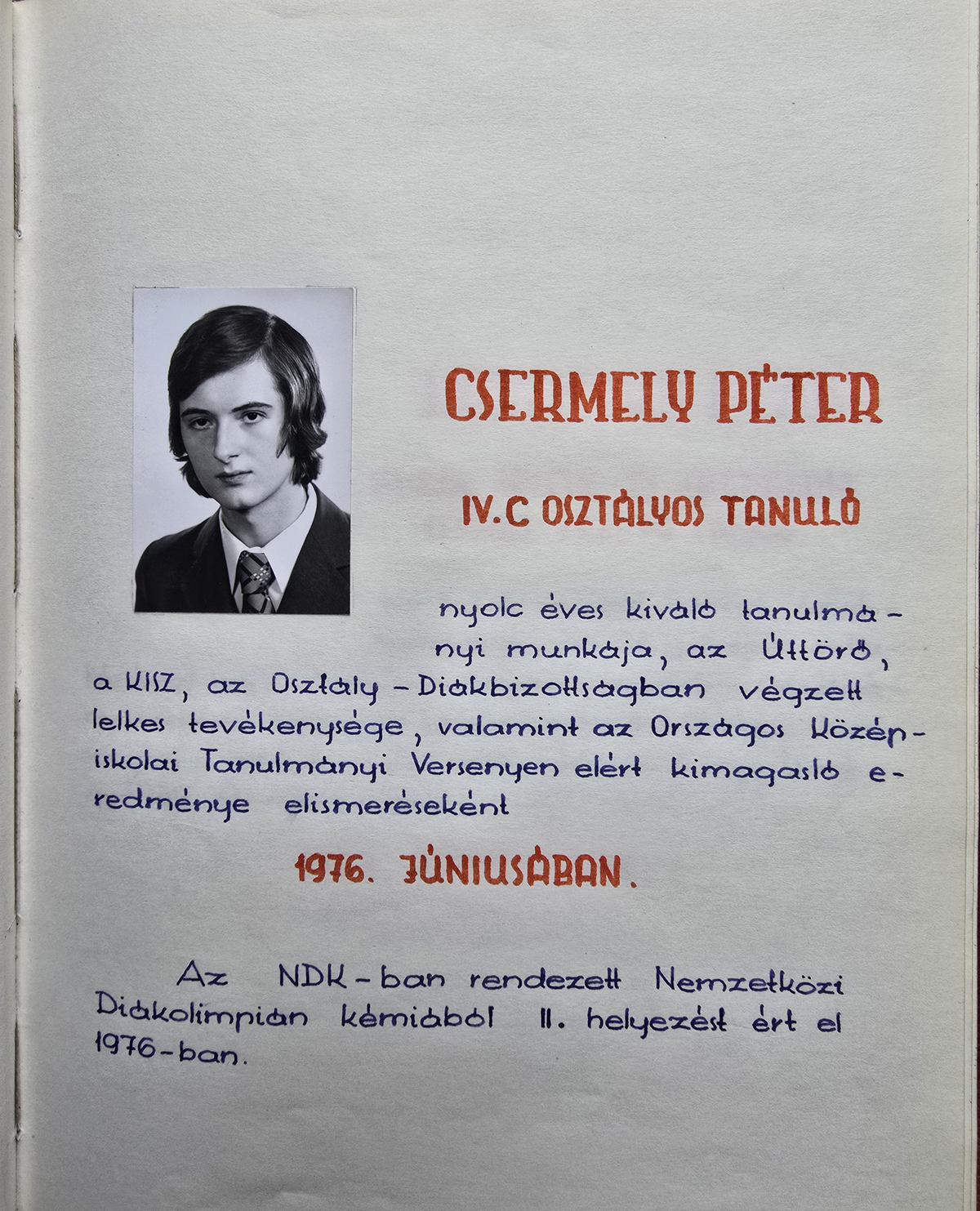 Az Apáczai-emlékérem első diák díjazottja. 1976.