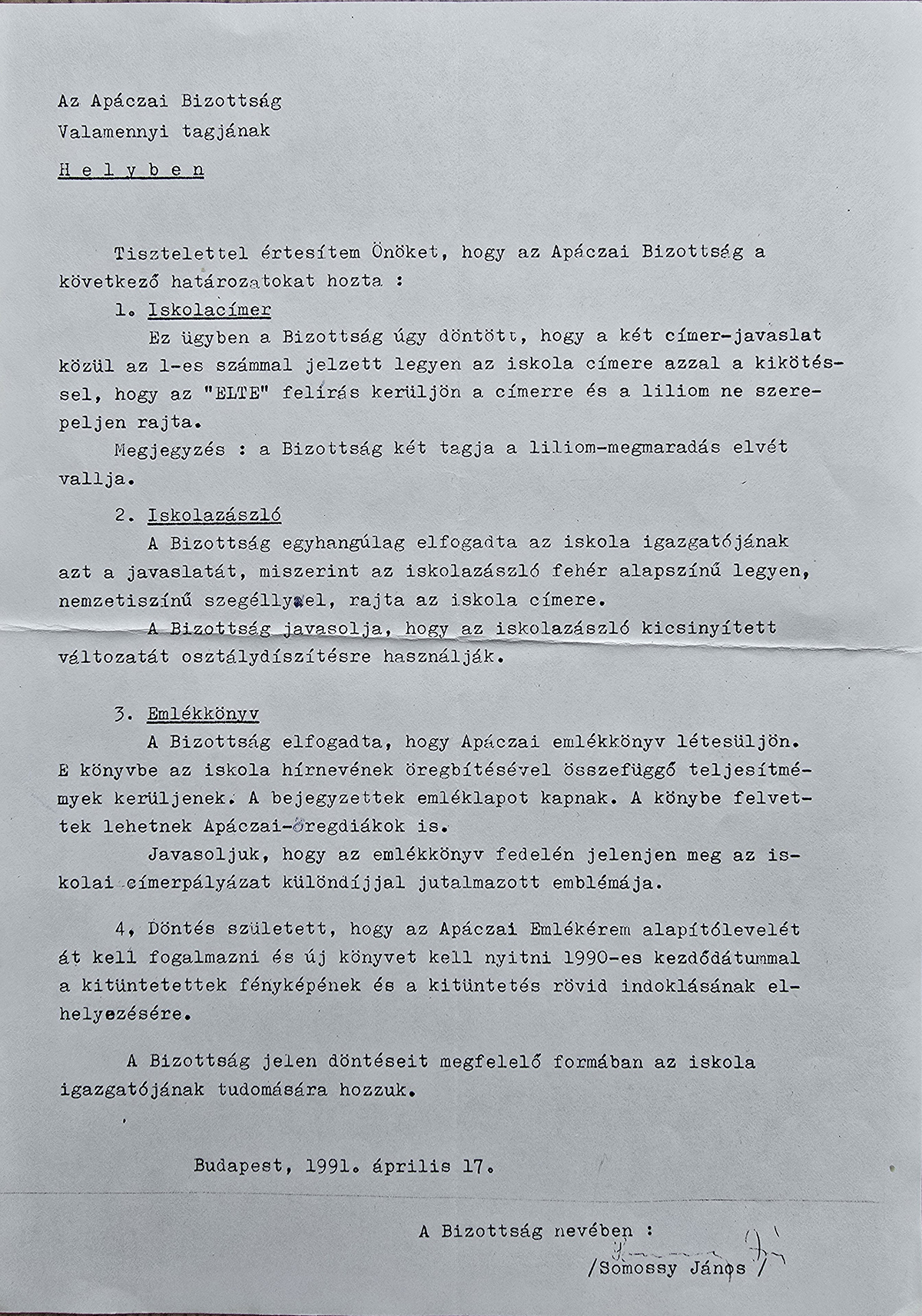 Az Apáczai-emlékérem alapítólevele. 1975. április 25. (4/4).