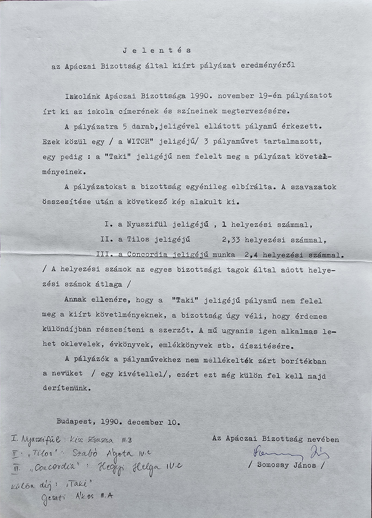 Jelentés az Apáczai Bizottság által kiírt pályázatok eredményéről. 1990.